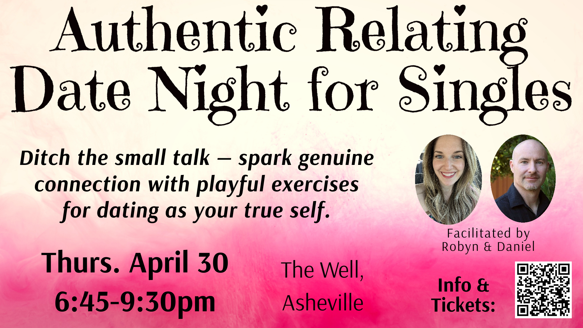 You can absolutely make a romantic connection at this event. But whether you meet your match or not, you’ll leave with lasting skills to approach dating and relationships with more ease and depth.