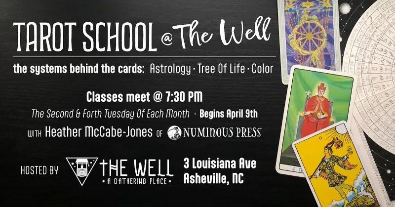 Tarot School at The Well is an ongoing in-person curriculum focusing on the symbolic design elements behind the Rider-Waite, Thoth, and Golden Dawn tarot decks.